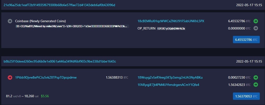 If we went ahead with the transaction, the input for the transaction would look like this: