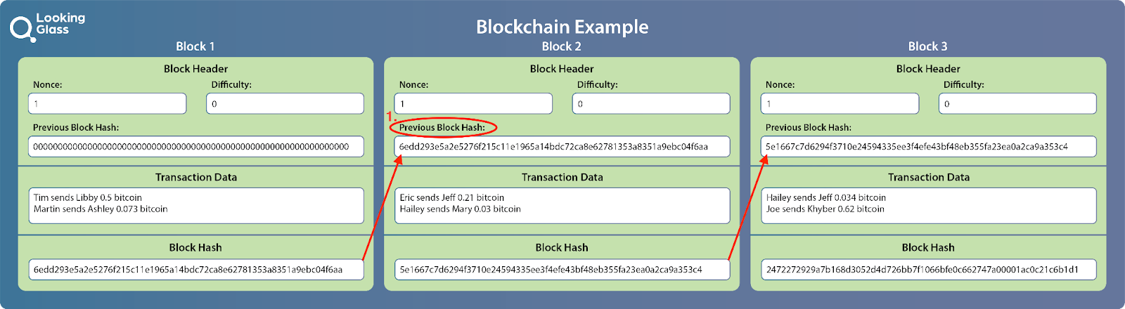 Through linking together blocks via the “Previous Block Hash” and creating a blockchain, two things are achieved: