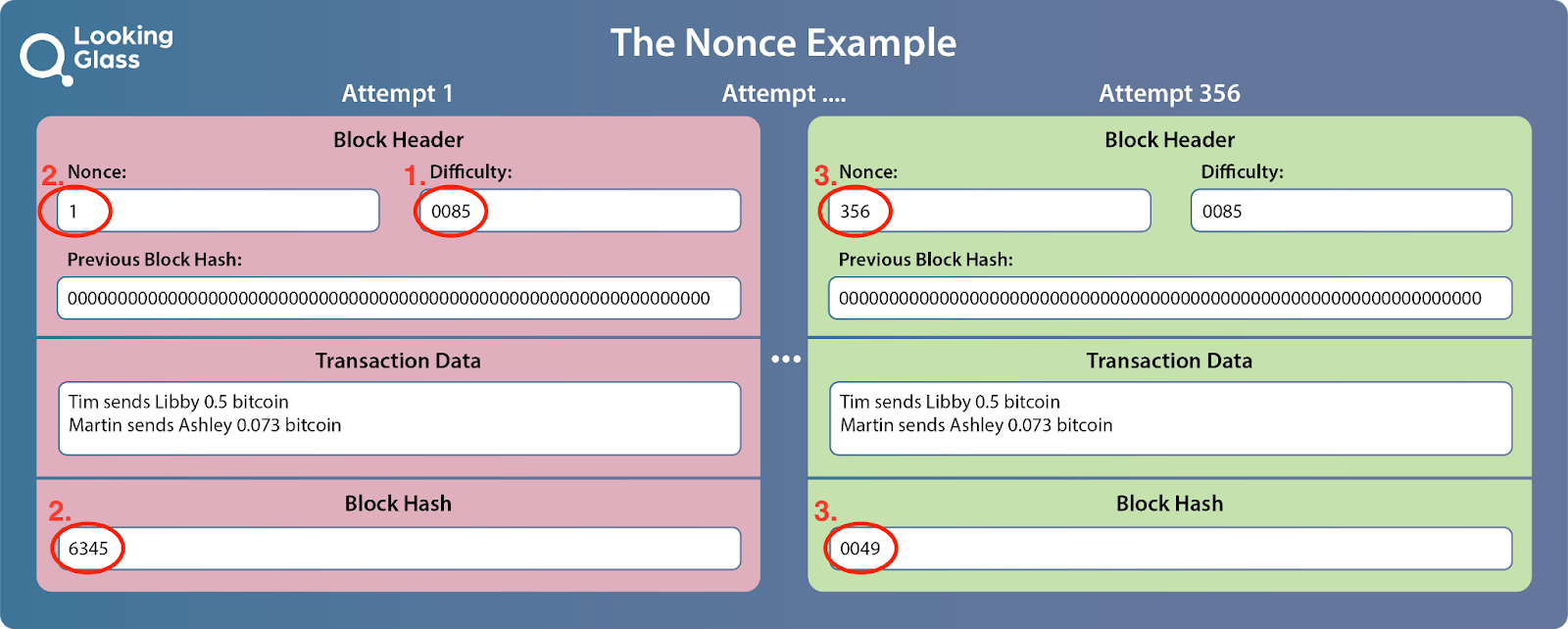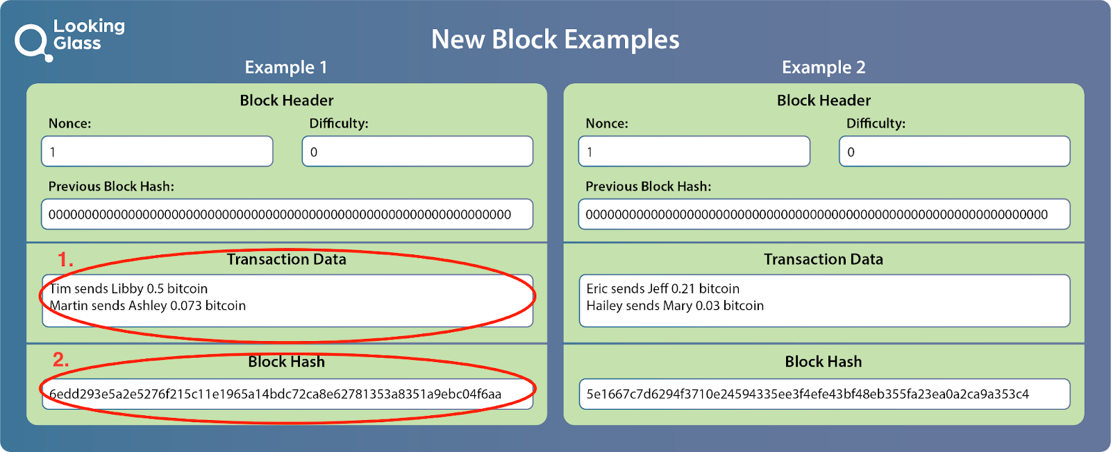 If we were to input “Looking Glass education is the best!” into a SHA256 hash function (which is the hash function currently used in Bitcoin), we would be returned with the following: